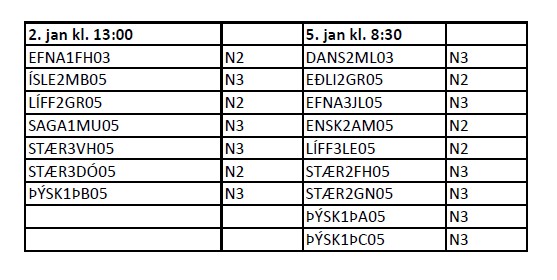 Prófin 2. janúar hefjast kl. 13:00