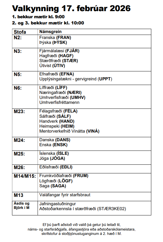 Allar upplýsingar um valið fyrir skólaárið 2026-2027 eru undir aðstoð í Innu.
