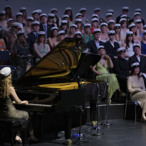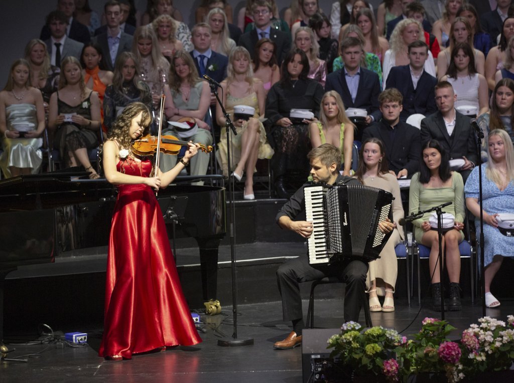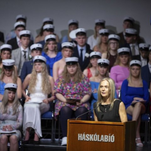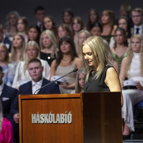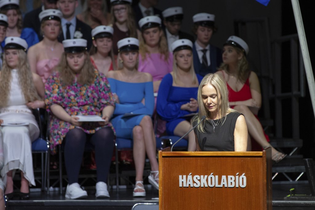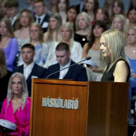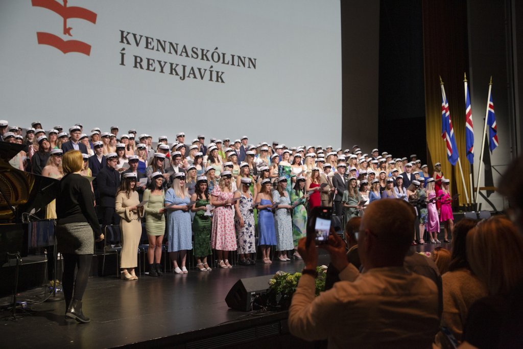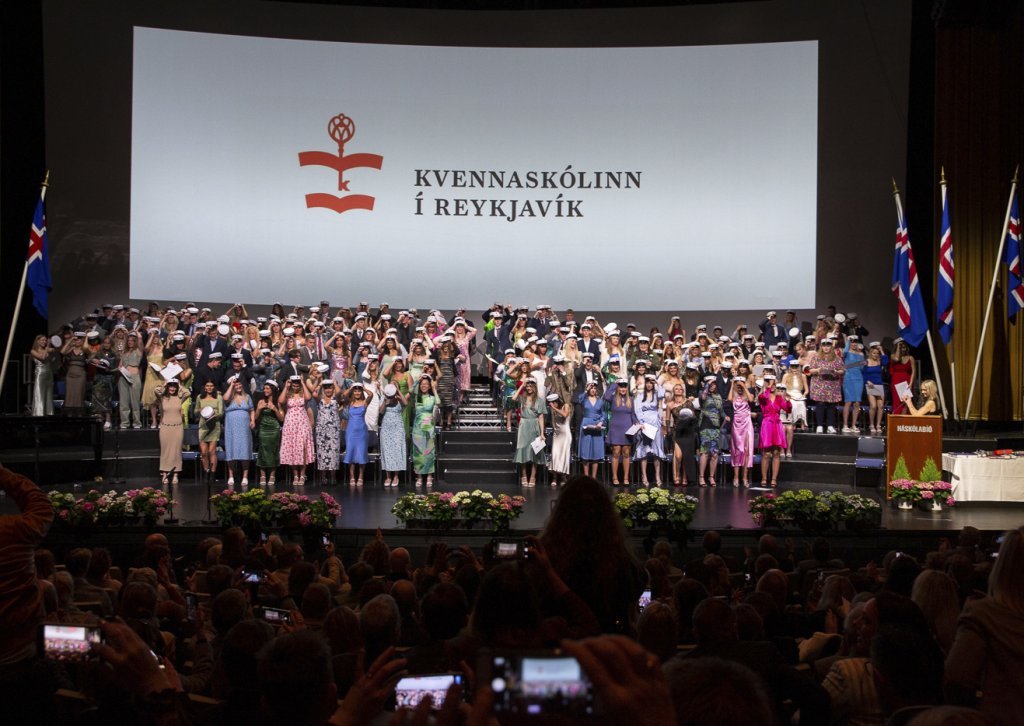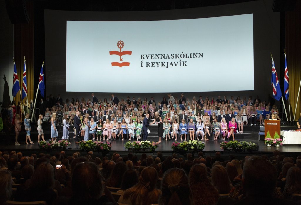 Mikil gleði ríkti í Háskólabíó í dag, laugardaginn 27. maí, þegar 200 nýstúdentar voru brautskráðir við hátíðlega athöfn. Það var svo sannarlega tilefni til að fagna enda margir að upplifa stóra persónulega sigra og stúdentsprófið loks í höfn. Kolfinna Jóhannesdóttir skólameistari stýrði athöfninni en auk hennar flutti Ásdís Arnalds, aðstoðarskólameistari skemmtilegt ávarp fyrir hönd starfsfólks. Nýstúdentar spiluðu stóran þátt í glæsilegri dagskrá. Félagar í kór Kvennaskólans sungu undir stjórn Lilju Daggar Gunnarsdóttur og þar söng Arna Hlín Aradóttir nýstúdent einsöng í lagi Jónasar Jónassonar Vor í Vaglaskógi við texta Kristjáns frá Djúpalæk. Síðar í athöfninni voru svo tvö tónlistaratriði frá nýstúdentum sem jafnframt hafa lokið burtfararprófi frá MÍT (Menntaskóla í tónlist). Annars vegar lék Matthildur Traustadóttir verkið Libertango eftir Astor Piazzolla á fiðlu en með henni spilaði Matthías Kormáksson á harmonikku. Hins vegar lék Helga Sigríður E. Kolbeins verkið Nocturne ( Notturno) op. 54 no. 4 eftir Edvard Grieg á píanó. Ávarp nýstúdents flutti Ólöf Thelma Arnþórsdóttir, fráfarandi forseti Keðjunnar sem er nemendafélag Kvennaskólans.