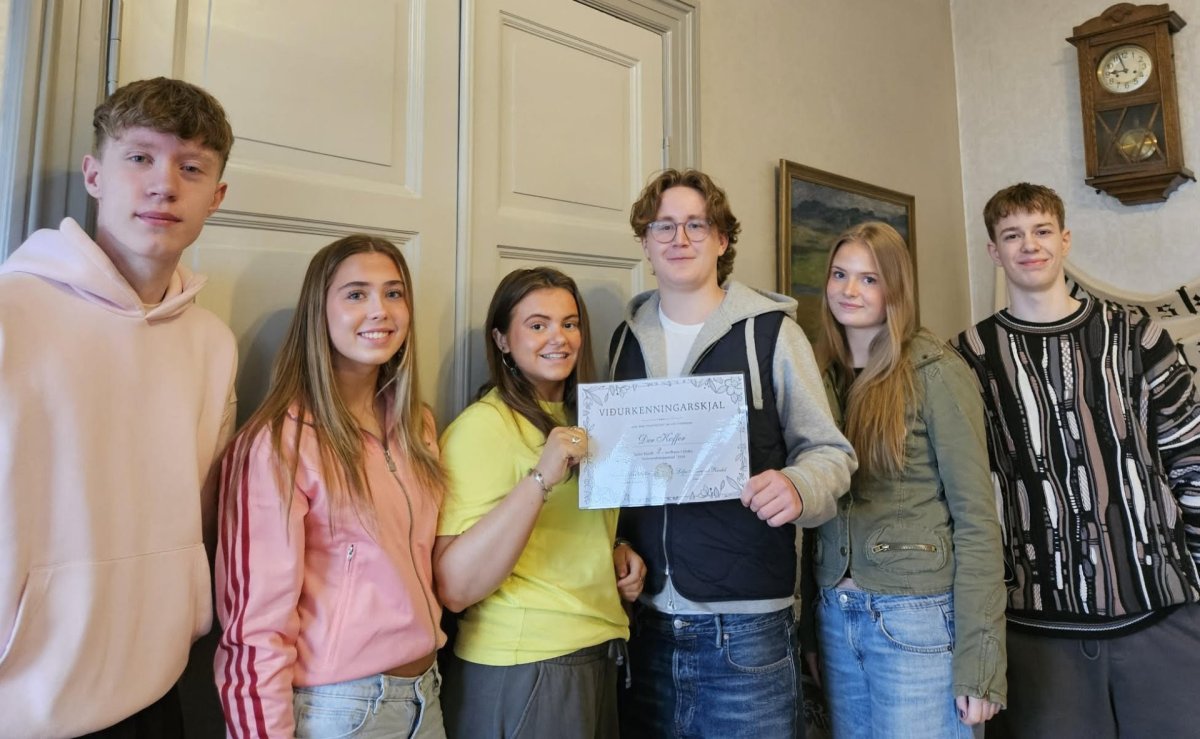 Á hverju ári efnir Félag þýskukennara til stuttmyndakeppni á meðal þýskunema í framhaldsskólum á öllu landinu. Alls bárust 15 myndir í keppnina að þessu sinni og hrepptu nemendur úr Kvennaskólanum 2. sætið fyrir mynd sína Der Koffer – eða Taskan. Nemendurnir sem standa að myndinni eru Davíð Þór Bjarnason, Eiður Jónsson, Elín Þóra Jóhannesdóttir, Hilmar Atli Birkisson, Hulda Rakel Jónsdóttir, Jónas Thor Þórhallsson og Sóley Magnúsdóttir en þau eru öll í 1. FÞ. Meðfylgjandi mynd var tekin þegar þau tóku á móti viðurkenningu fyrir árangurinn. Við í Kvennó óskum þeim innilega til hamingju.
