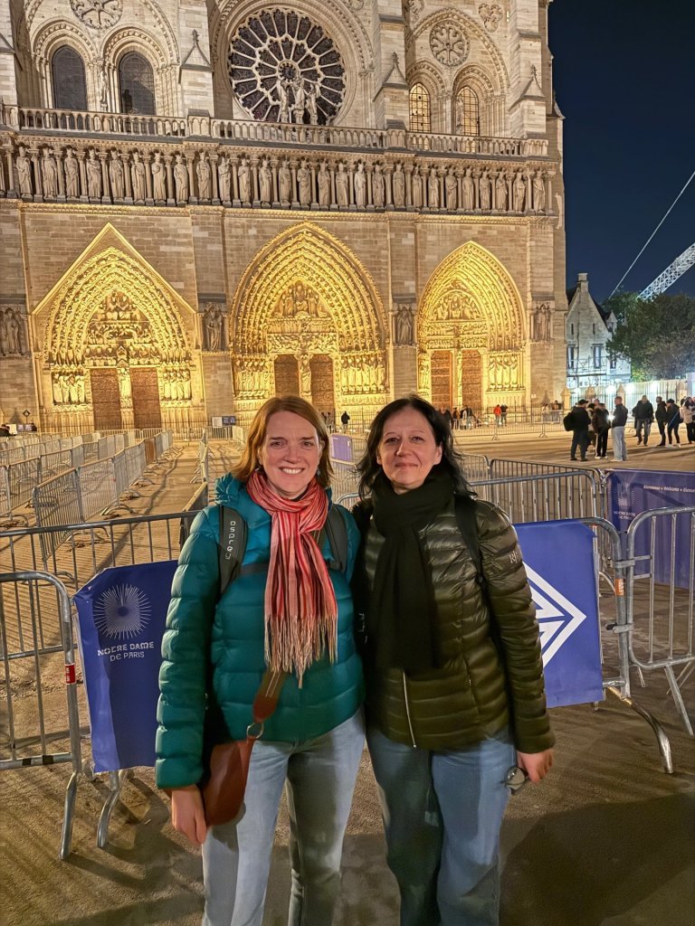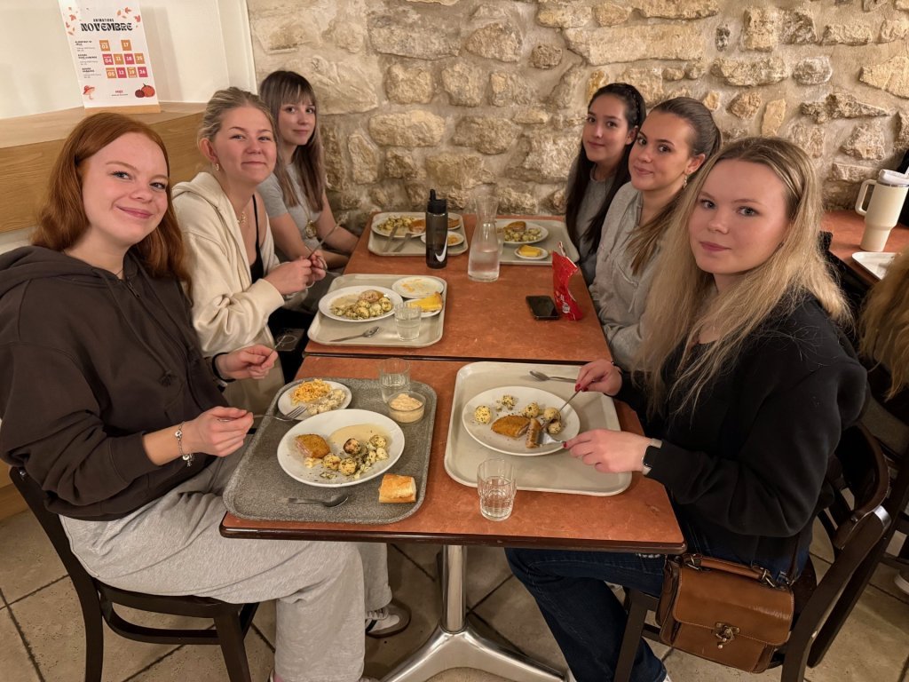 Svokallaður Parísaráfangi hefur verið í boði fyrir frönskunemendur skólans á 3. ári í mörg ár og notið töluverðra vinsælda. Í áfanganum fræðast nemendur um heimsborgina París og vinna ýmis verkefni. Menningar- og fræðsluferð til Parísar er hápunktur áfangans og hefur hún yfirleitt verið farin eftir 6-7 kennsluvikur. Í ár brá svo við að þremur dögum fyrir brottför var flugfélagið Play lýst gjaldþrota og góð ráð voru dýr. Sem betur fer tókst að skipuleggja ferðina síðar á önninni með flugfélaginu Transavia og dvaldi vaskur hópur 24 nemenda ásamt tveimur frönskukennurum skólans frá 6.-10. nóvember í borg ljósanna. Gist var í Mýrinni, le Marais, eins og mörg undanfarin ár, en það er fallegt, sjarmerandi og einstaklega vel staðsett hverfi í hjarta borgarinnar. Þessir dýrmætu dagar voru nýttir til hins ítrasta, hópurinn komst yfir ótrúlega mikið á stuttum tíma. Fyrsta morguninn var farið að Sigurboganum og gengið niður hluta af breiðgötunni Champs-Elysées. Því næst var brunað í Louvre safnið þar sem nemendur kíktu á Monu Lísu (eða la Joconde eins og hún er kölluð á frönsku) áður en þeir fóru í skemmtilegan ratleik á safninu í litlum hópum. Næst á dagskrá var hinn eini og sanni Eiffel turn. Daginn eftir gekk hópurinn fram hjá Notre-Dame og dreif sig í beinu framhaldi í siglingu á Signu þar sem mörg þekkt kennileiti borgarinnar komu við sögu. Því næst fór hópurinn í göngu um latínuhverfið á vinstri bakkanum og sá m.a. háskólann Sorbonne, grafhýsið Panthéon og stærstu mosku Parísarborgar. Síðasta heila daginn gekk hópurinn saman um hverfið sitt, Mýrina, áður en hann hélt upp á Montmartre hæðina í fínan göngutúr. Um kvöldið snæddi hópurinn saman kvöldverð í grennd við gistiheimilið. Á brottfarardeginum rifu nokkrir nemendur sig eldsnemma á fætur og náðu að fara í morgunmessu í hinni undurfögru og nýuppgerðu Notre-Dame. Það er stund sem þau gleyma seint.