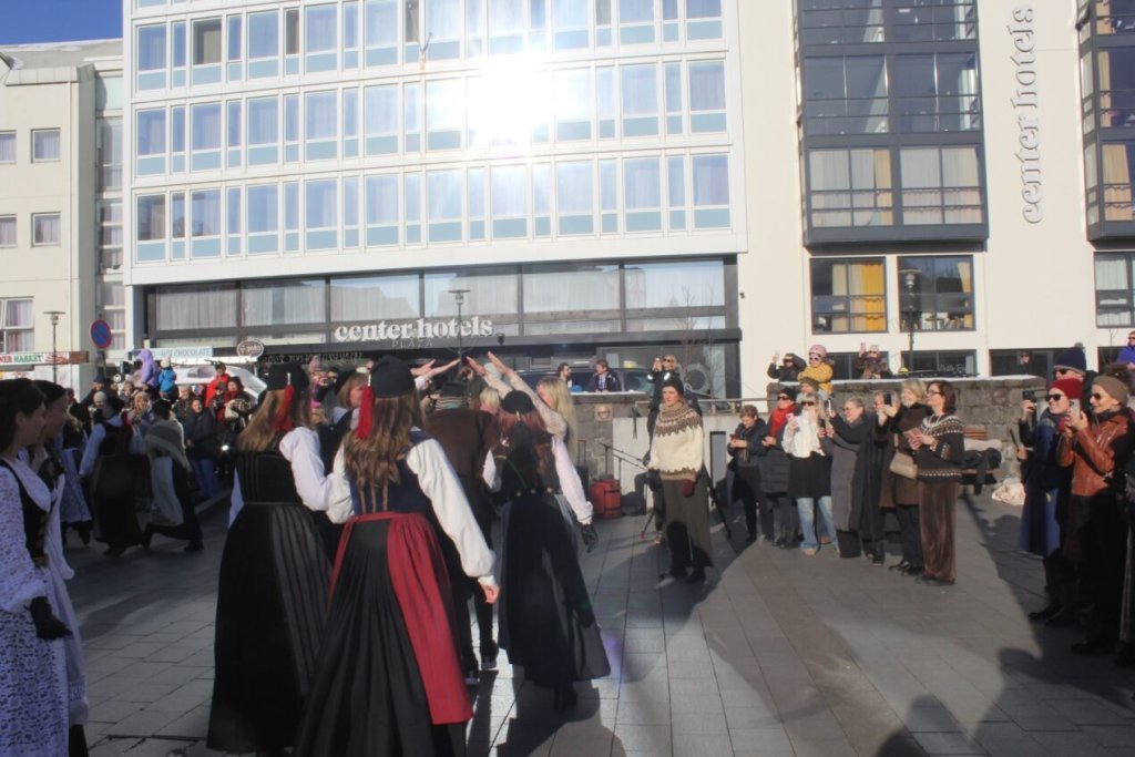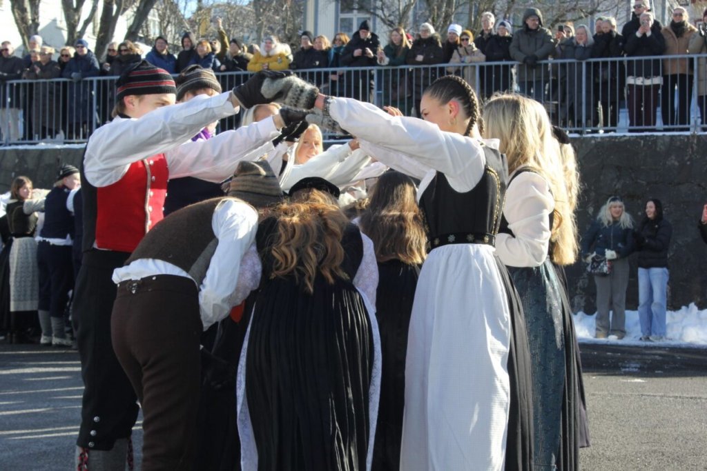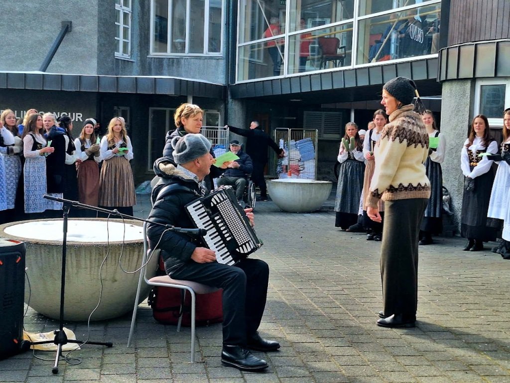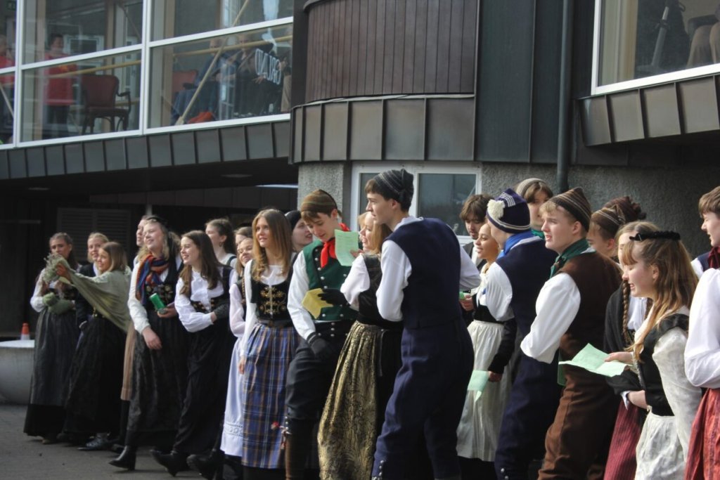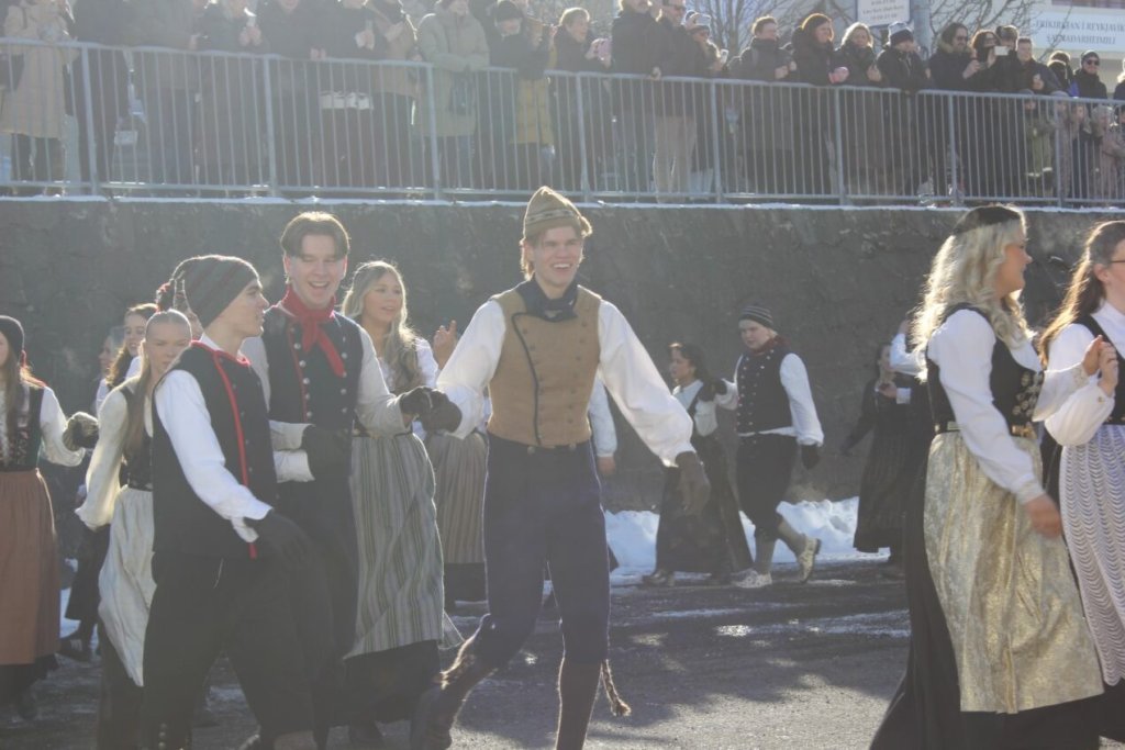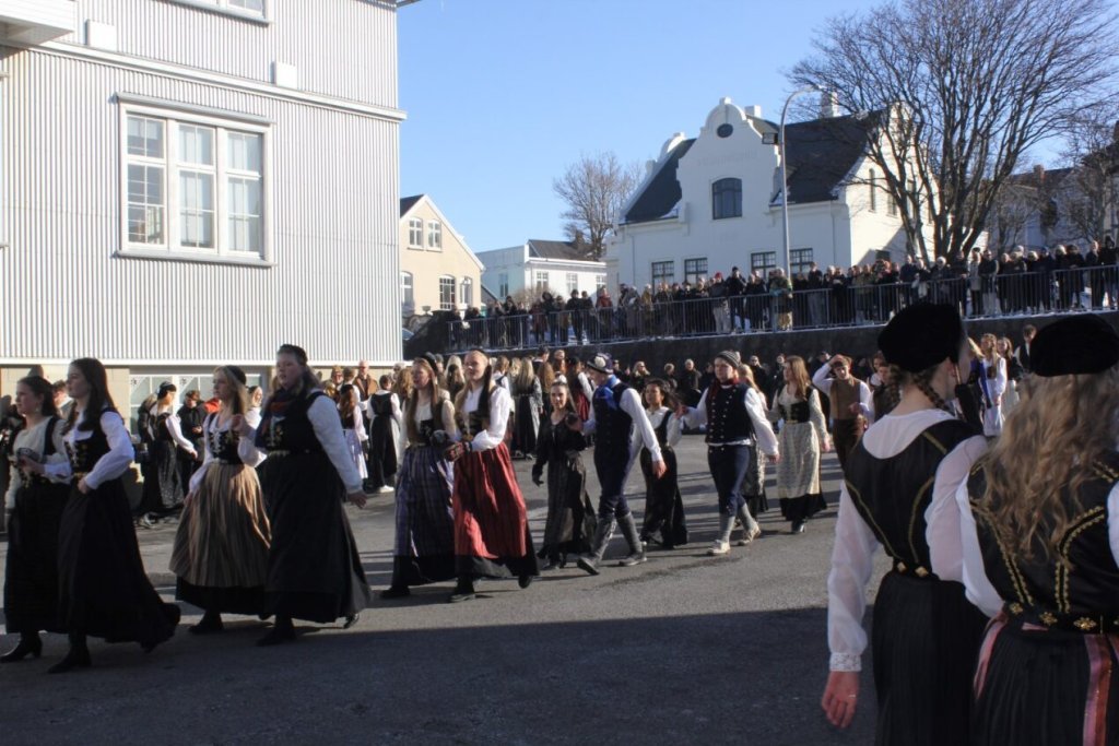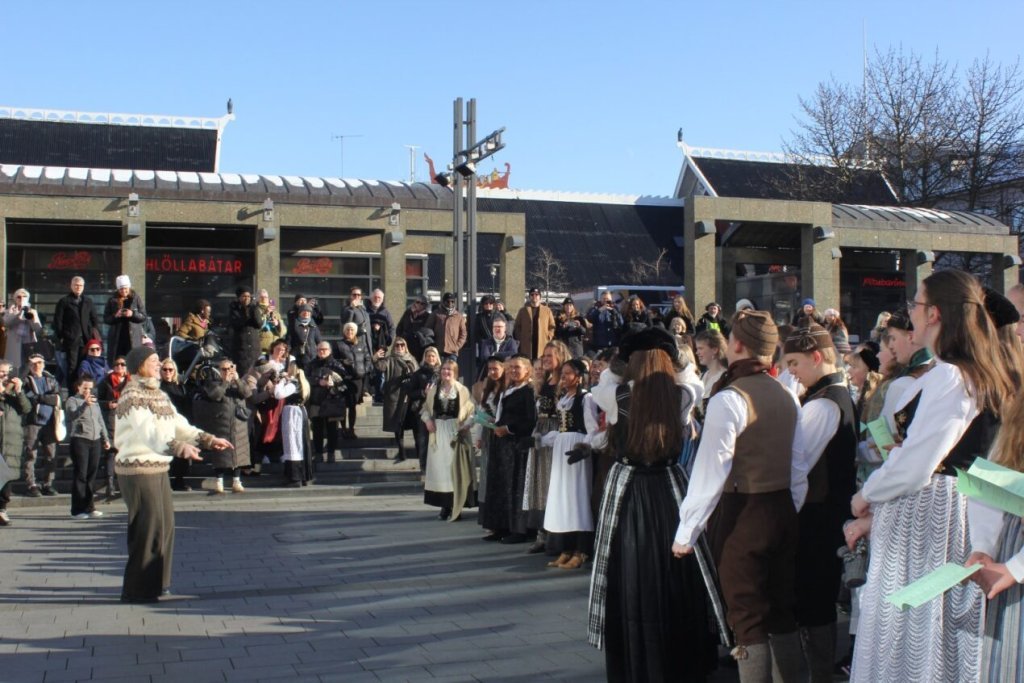 Það voru góð ráð dýr þegar gefin var út appelsínugul viðvörun fyrir peysufatadaginn. Ákveðið var með skömmum fyrirvara að halda hann hátíðlegan degi fyrr, 25. mars, og það í fallegu sólskinsveðri. Nemendur á 2. ári dönsuðu og sungu á Ingólfstorgi, í porti Kvennaskólans, fyrir íbúa og starfsfólk á Grund og loks í Þjóðminjasafni Íslands. Safnið tók vel á móti hópnum í lok dags og bauð upp á hressingu sem við kunnum bestu þakkir fyrir. Margrét Helga Hjartardóttir frönskukennari hafði sem fyrr veg og vanda að öllum undirbúningi. Atli Freyr Hjaltason frá Þjóðdansafélaginu kenndi nemendum danssporin og Gísli Einarsson sá um harmonikkuleik allan daginn. Við þökkum þeim öllum kærlega fyrir þeirra framlag. Eins og sjá má á meðfylgjandi myndum, sem ljósmyndanefnd Keðjunnar og starfsfólk skólans tóku, ríkti mikil gleði þennan fallega dag. Einnig má finna myndir ásamt umfjöllun hjá nokkrum fjölmiðlum: Vísi, Mbl.is og RÚV.