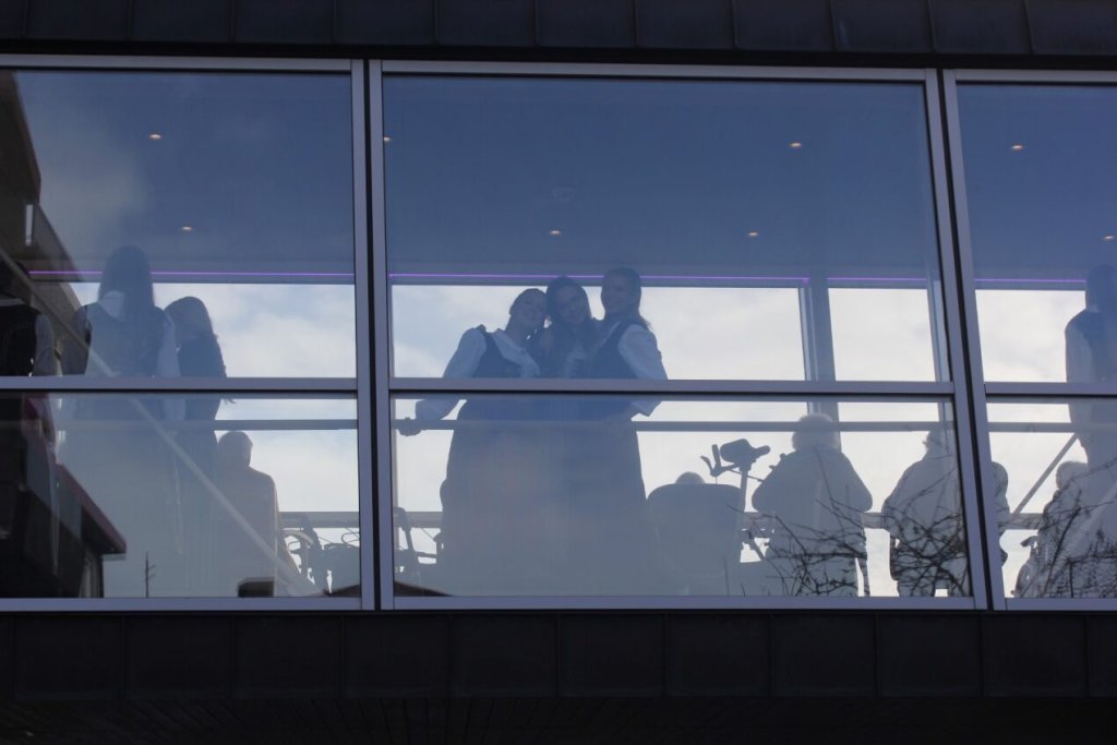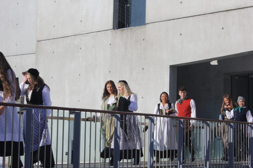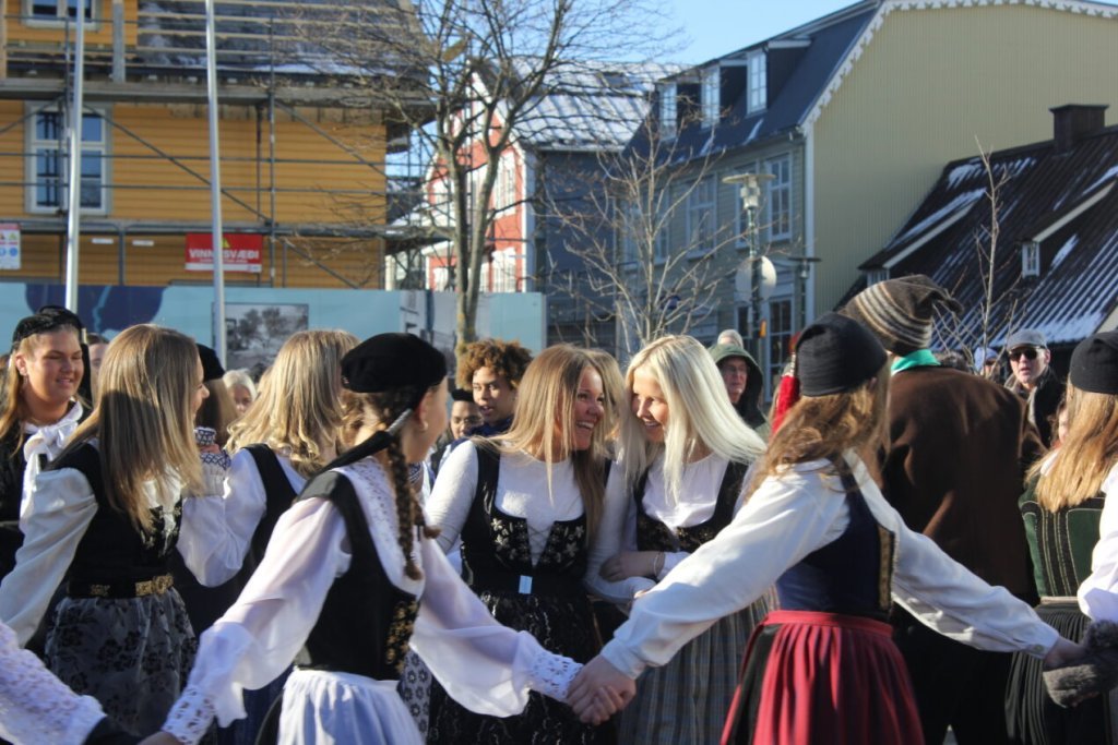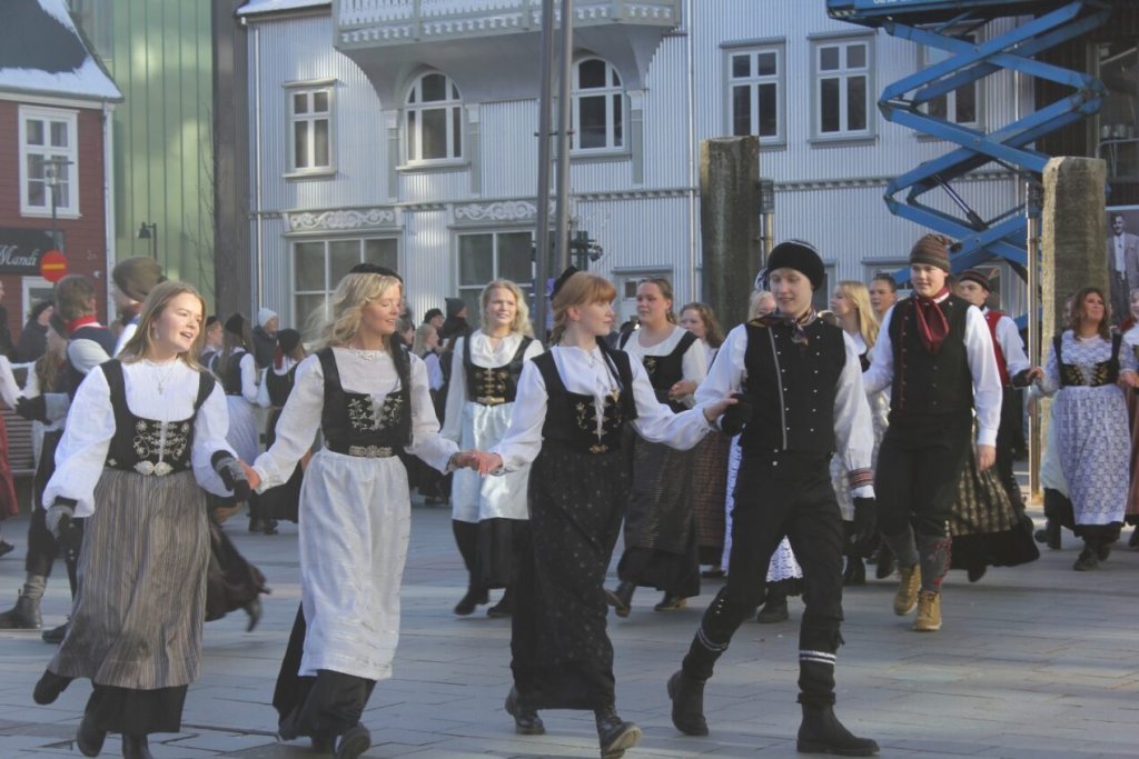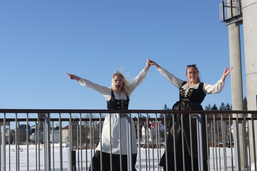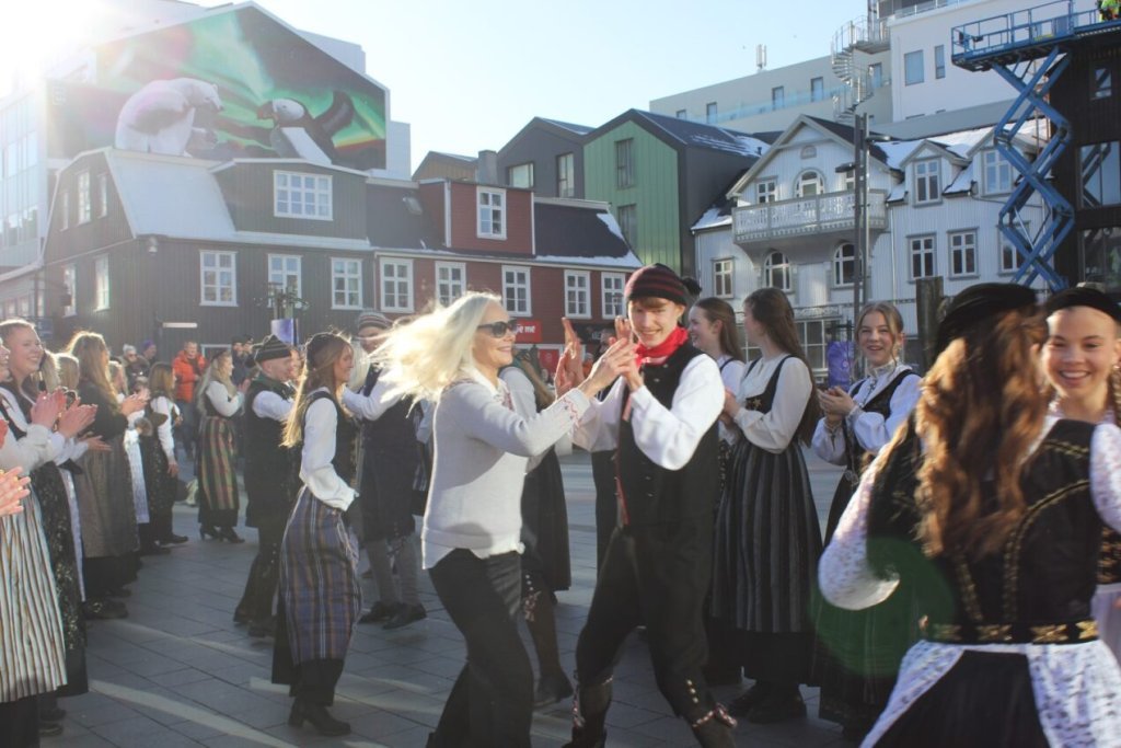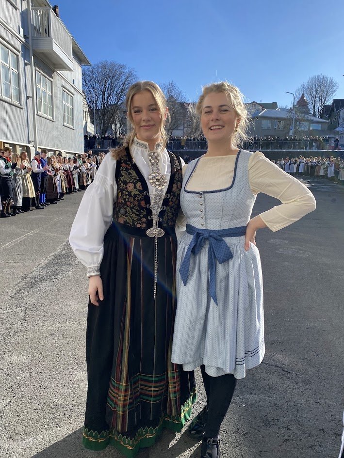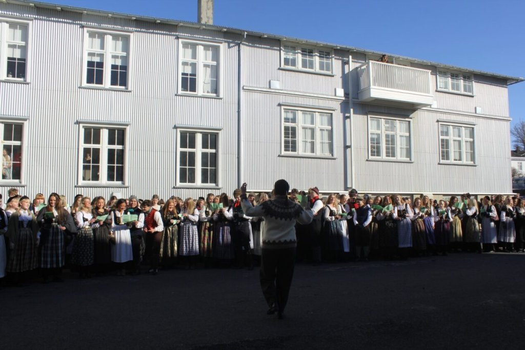 Það voru góð ráð dýr þegar gefin var út appelsínugul viðvörun fyrir peysufatadaginn. Ákveðið var með skömmum fyrirvara að halda hann hátíðlegan degi fyrr, 25. mars, og það í fallegu sólskinsveðri. Nemendur á 2. ári dönsuðu og sungu á Ingólfstorgi, í porti Kvennaskólans, fyrir íbúa og starfsfólk á Grund og loks í Þjóðminjasafni Íslands. Safnið tók vel á móti hópnum í lok dags og bauð upp á hressingu sem við kunnum bestu þakkir fyrir. Margrét Helga Hjartardóttir frönskukennari hafði sem fyrr veg og vanda að öllum undirbúningi. Atli Freyr Hjaltason frá Þjóðdansafélaginu kenndi nemendum danssporin og Gísli Einarsson sá um harmonikkuleik allan daginn. Við þökkum þeim öllum kærlega fyrir þeirra framlag. Eins og sjá má á meðfylgjandi myndum, sem ljósmyndanefnd Keðjunnar og starfsfólk skólans tóku, ríkti mikil gleði þennan fallega dag. Einnig má finna myndir ásamt umfjöllun hjá nokkrum fjölmiðlum: Vísi, Mbl.is og RÚV.