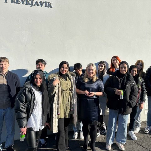 Í síðustu viku var nýr vefur Árnastofnunar, m.is, opnaður formlega í sal Kvennaskólans af Lilju Dögg Alfreðsdóttur, menningar- og viðskiptaráðherra. Nemendur á nýrri íslenskubraut í Kvennaskólanum voru á meðal nemenda sem mættu á viðburðinn og má sjá hópinn ásamt ráðherra og Katarzynu Agnieszku Rabeda, deildarstjóra brautarinnar á myndinni hér til hliðar. Verkefnisstjóri nýja vefsins er Starkaður Barkarson en hann er einmitt kennari við Kvennaskólann.