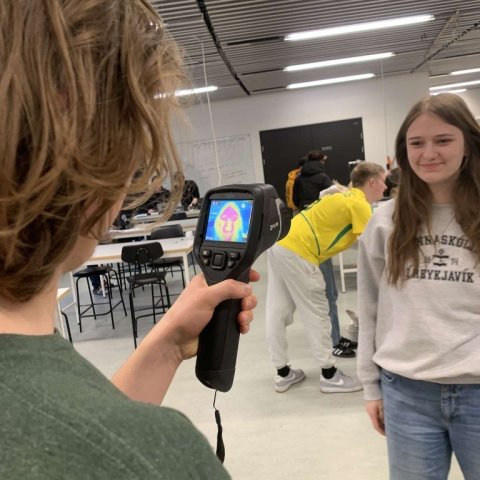 Það hefur verið nóg um að vera í vetur hjá nemendum sem eru í valáfanganum EÐLI3GS05 - Snúningur og geislun. Þetta er valáfangi á þriðja þrepi þar sem nemendur á þriðja ári á náttúruvísindabraut kafa djúpt ofan í ýmis lögmál eðlisfræðinnar með aðstoð okkar frábæru eðlisfræðikennara, Leu Maríu Lemarquis og Mariu Sastre. Í vetur hafa þau til dæmis verið að vinna sjálfstætt og í hópum tengt ýmsum tilraunum og undirbúið fyrirlestra fyrir hvert annað um afmörkuð efni eðlisfræðinnar.